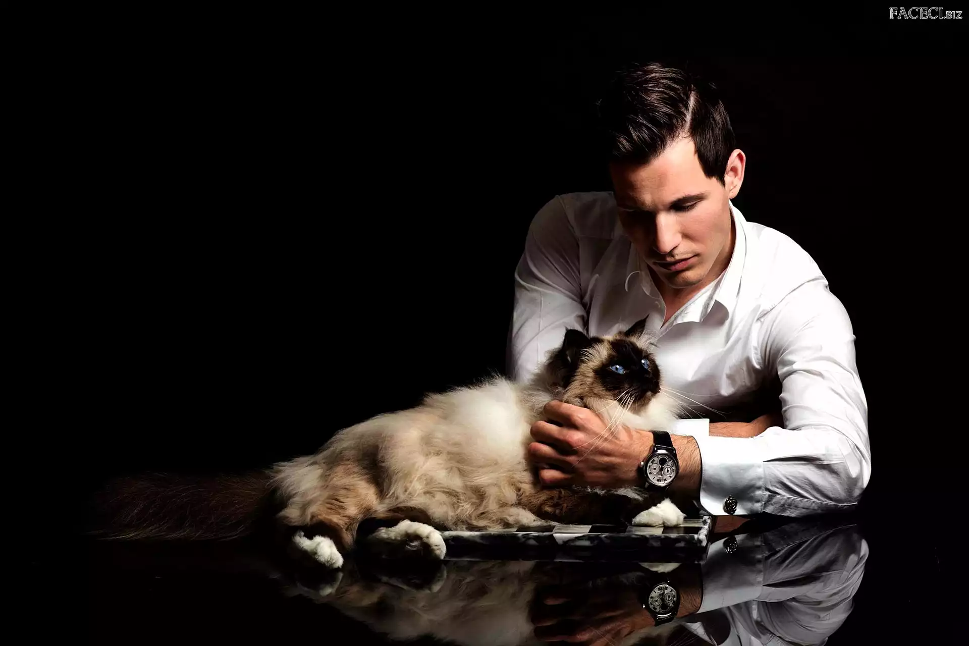 Czarne Tło, Mężczyzna, Kot himalajski - faceci.biz